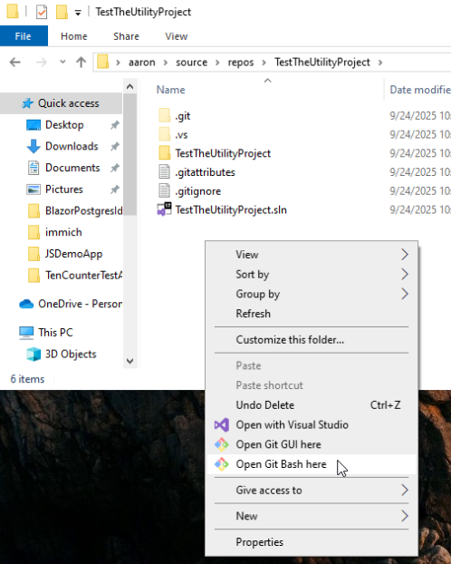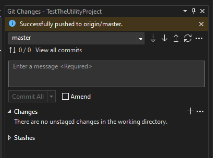 The first step is to have repositories setup for both your consuming and utilities solutions. At this point your consuming solution should be fairly new with no references to the utility solution yet...we will walk through that here. The assumption is that you can also commit/push both projects to the remote. You should have GIT bash installed as Visual Studio can't add the submodule on its own.