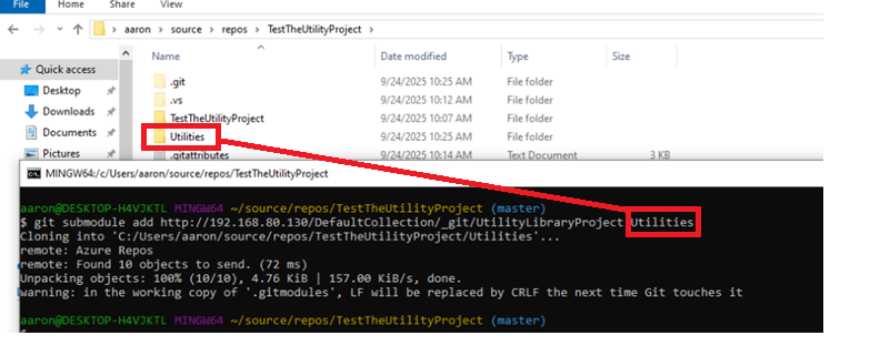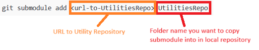 git submodule add <url-to-UtilitiesRepo> UtilitiesRepoThese images provide some more insight into this command.